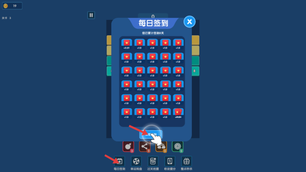 1、游戏初期,记得每日点击【每日签到】,积累奖励,助力后续关卡。