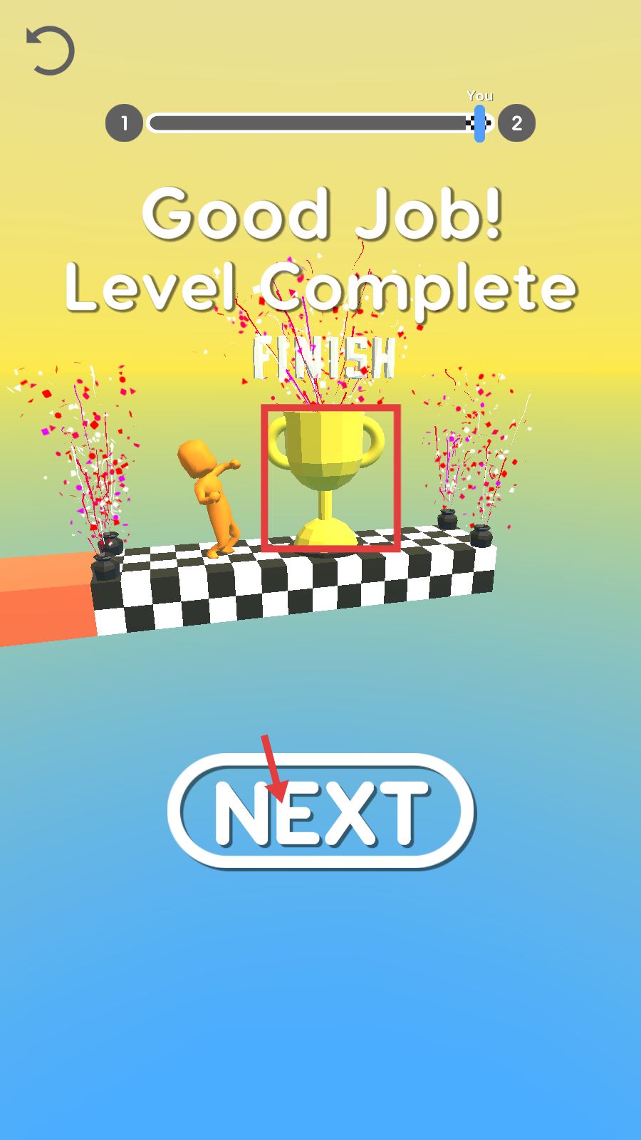 4、关卡完成后,看到【Good-Job!-Level-Complete】提示,及时点击【NEXT】按钮,进入下一关。