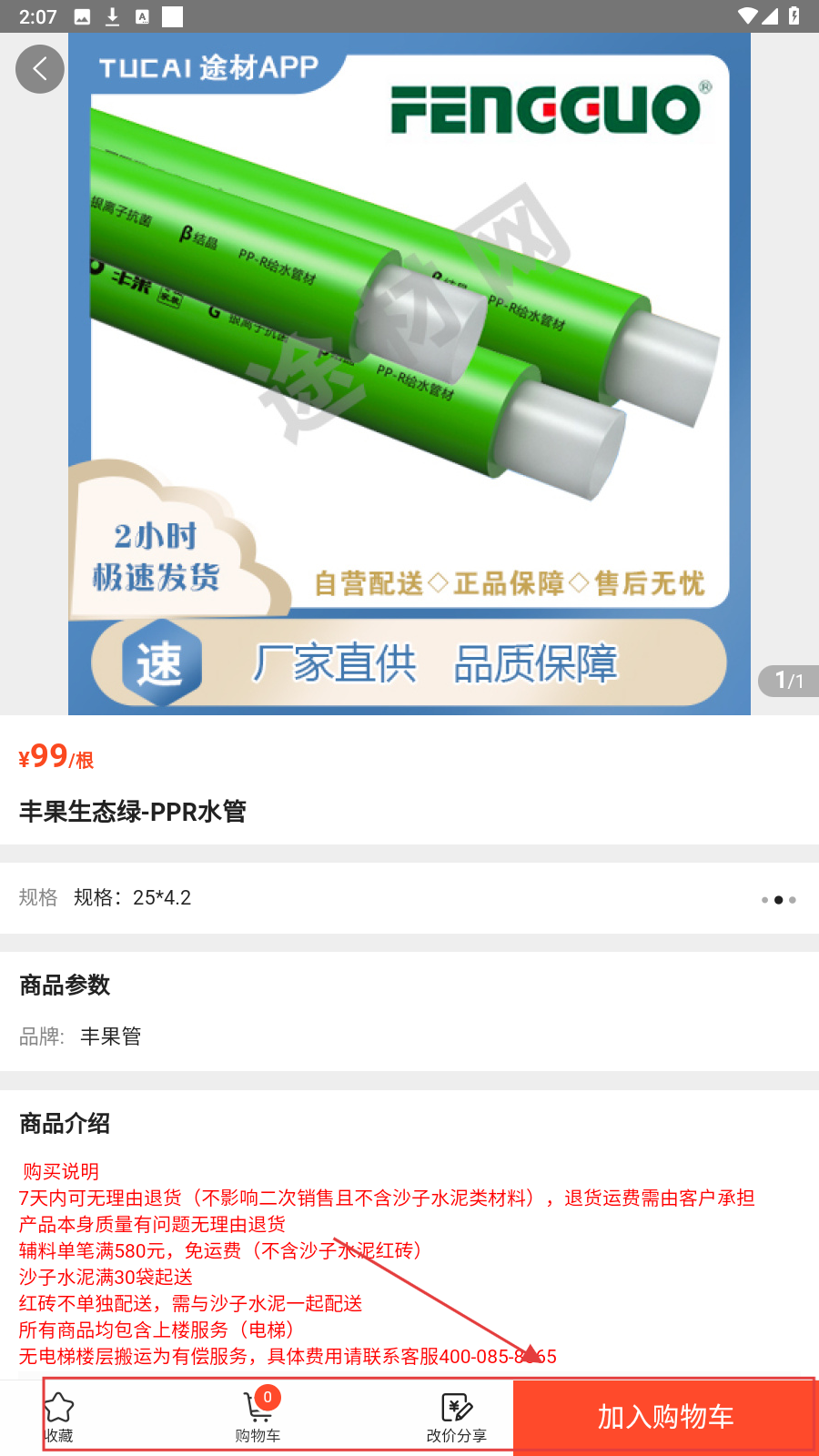3、在商品详情页,能查看商品参数、介绍等信息,点击【加入购物车】可将商品加入购物车。