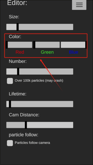 4、最后,预览粒子效果,通过点击屏幕来生成粒子,并使用菜单按钮进行更多设置调整。