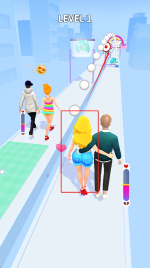 2、道路上有各种提升恩爱值的小道具,收集道具不仅能增加数值,还能触发甜蜜互动动画,让跑酷过程爱意满满,趣味十足。