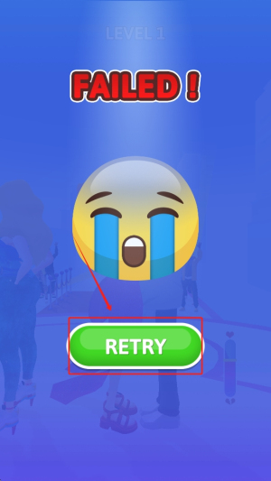 4、最后,如果游戏失败,点击“RETRY”按钮重新开始当前关卡,继续挑战。