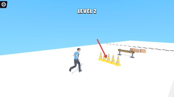 2、进入第二关卡后,注意快碰到障碍物时,点击屏幕操纵小人,跳跃过障碍物。