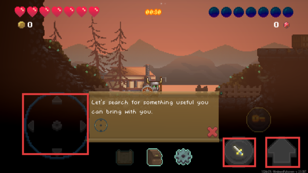 1、开局留意屏幕提示,利用左下角方向键和右下角动作键,探索场景找有用物品。