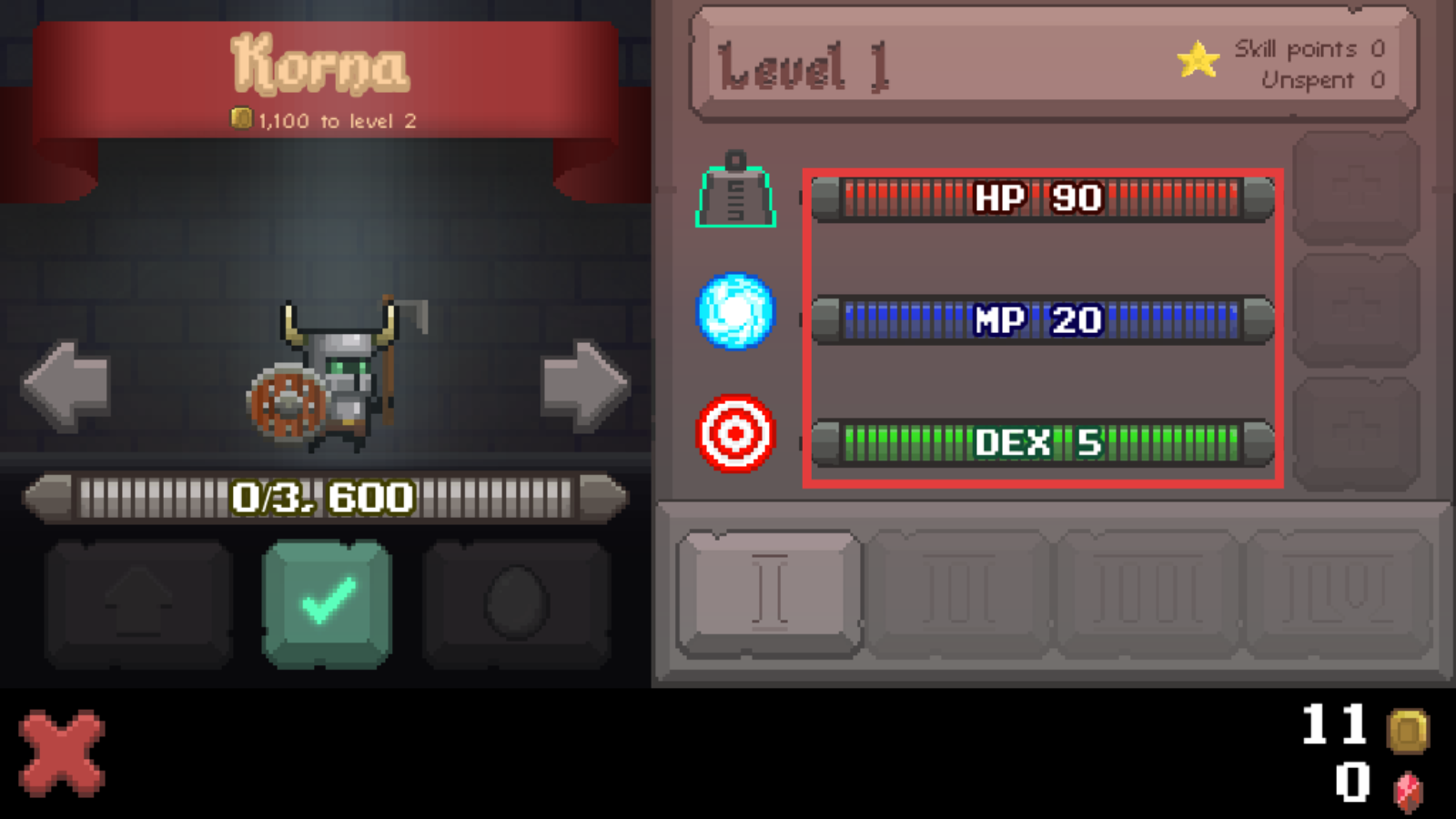 4、关注角色界面的【HP】【MP】【DEX】数值,升级后根据需求合理分配属性点,提升角色战斗能力。