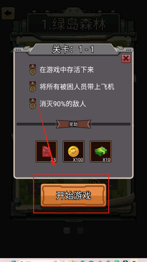 1、点击“开始游戏”进入1-1关卡。