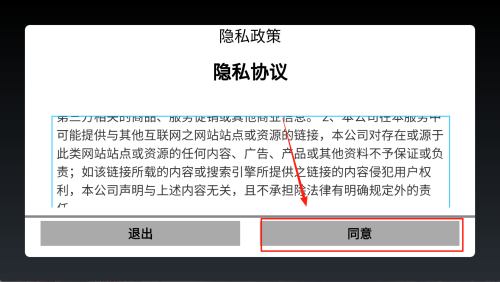 1、点击“同意”接受隐私政策,立即进入游戏。