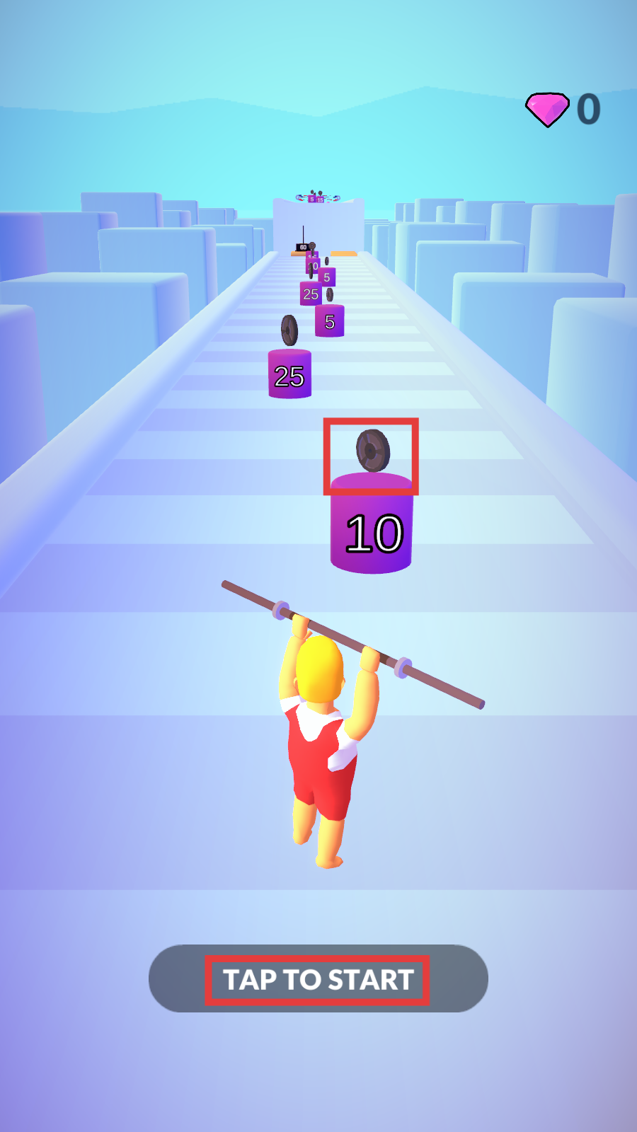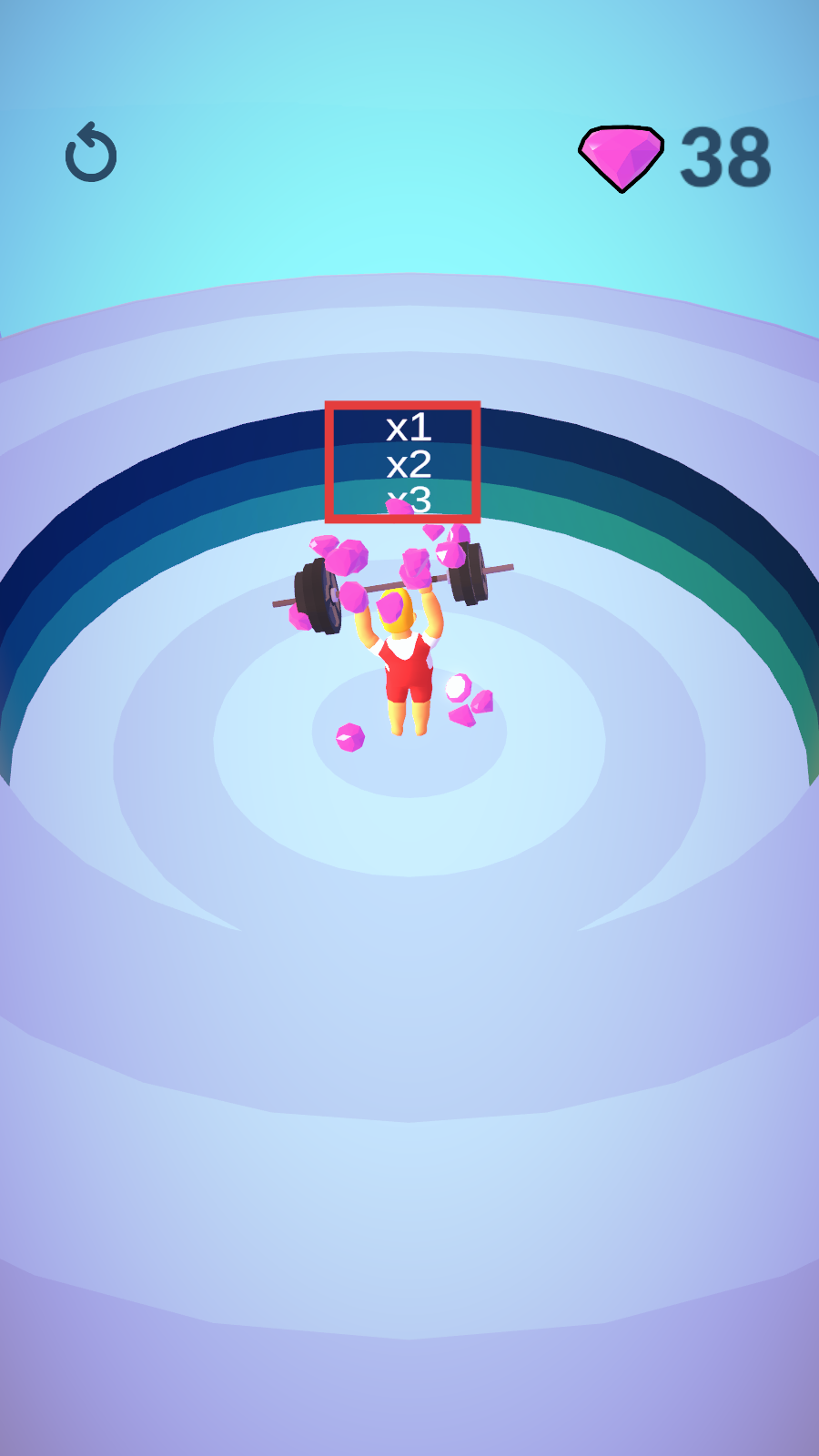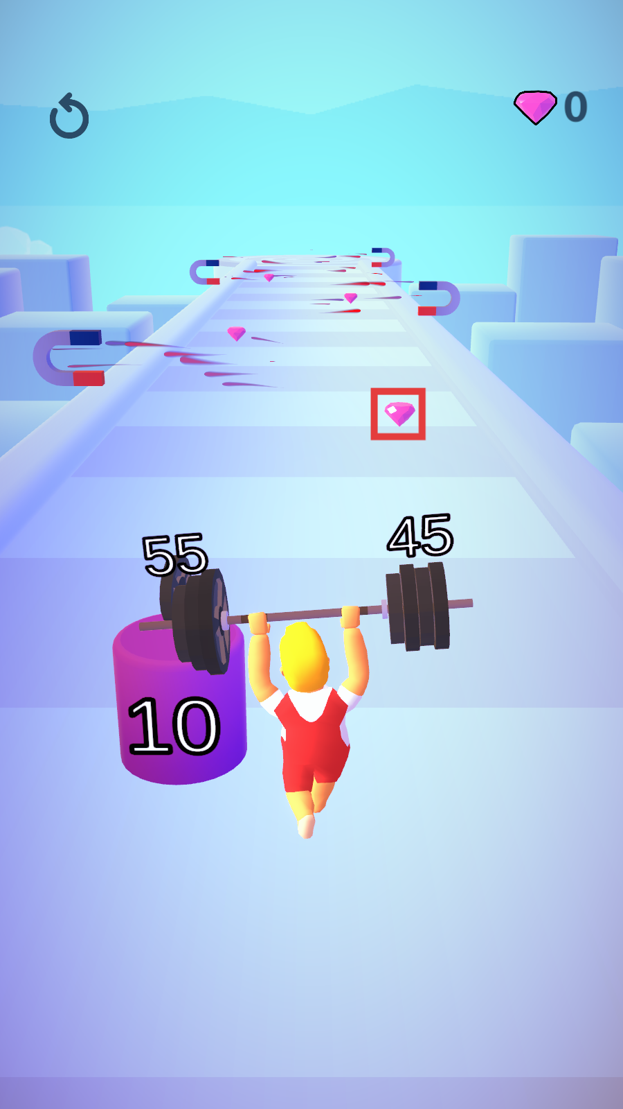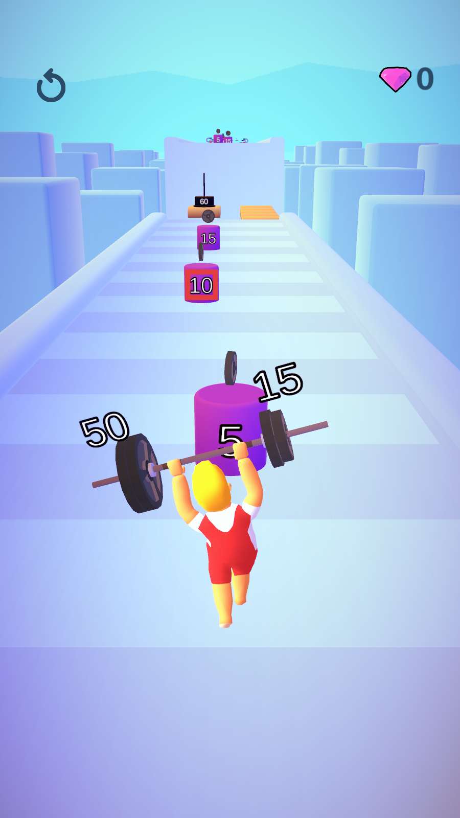 2、行进中看准时机,撞击不同数字方块增加杠铃重量。