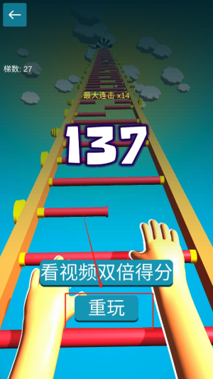 1、作为攀爬类闯关游戏,核心玩法聚焦梯子攀爬,向上攀登的过程充满目标感,每升高一段都能带来微小成就感,累积成持续的游玩动力。