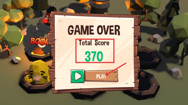 4、游戏结束后,查看【Total-Score】总结经验,点击【PLAY】按钮重新开始挑战更高分。