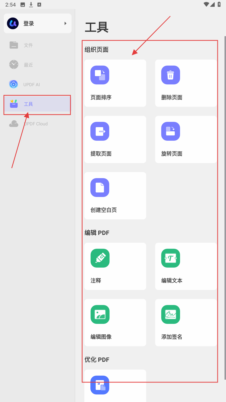1、在UPDF应用中,点击左侧【工具】选项,可使用【页面排序】【删除页面】等多种PDF处理功能。