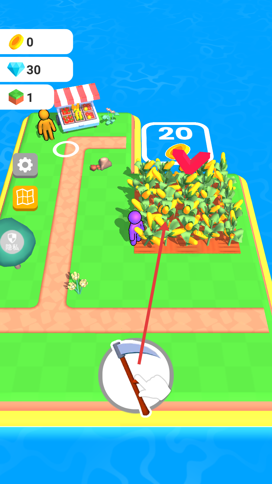 4、合理规划资源收集与使用,当农作物成熟时,点击镰刀图标收割,获取农作物【玉米】,运送到小贩,获取金币、钻石等资源。