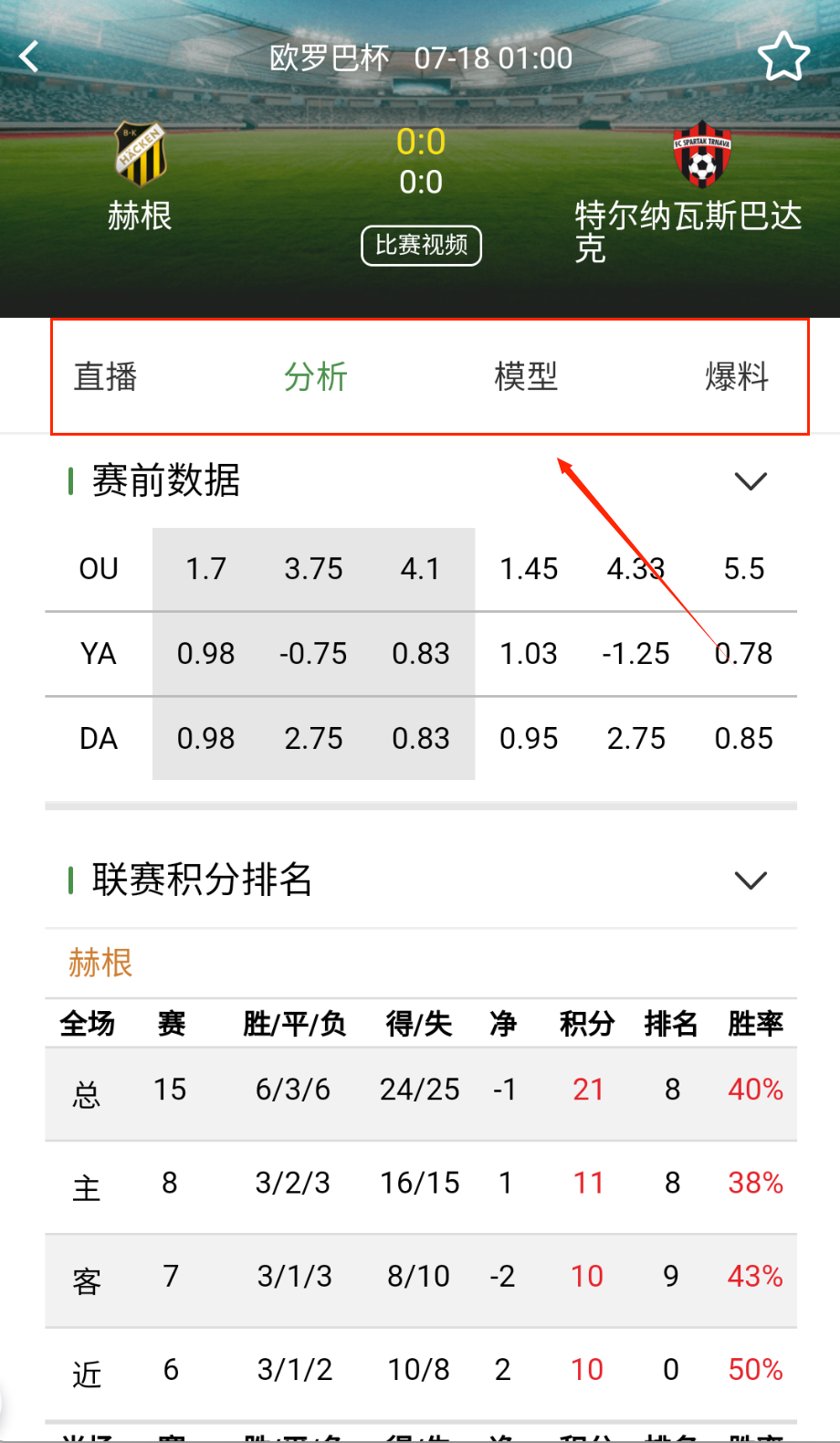 2、详情页浏览球队数据和历史交锋,查看专家预测分析,并且收藏重要比赛啦。