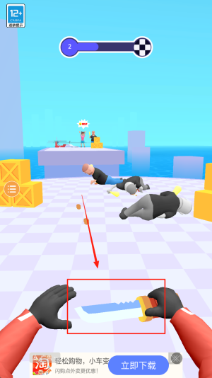 1、进入关卡后,观察敌人位置与周围环境,滑动屏幕调整飞刀投掷角度,瞄准后释放,让飞刀旋转着飞向敌人,命中即可造成伤害。