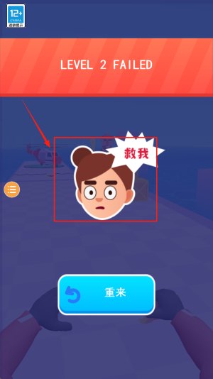 1、关卡失败怎么办?点击“重来”按钮即可重新挑战第2关,继续游戏。