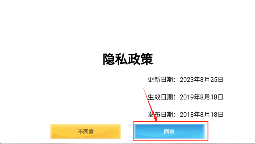 1、首次启动?点击“同意”按钮接受隐私政策,即可进入游戏主界面。