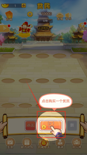 4、点击贫民图标,查看其详细信息和当前等级,开始游戏挑战。