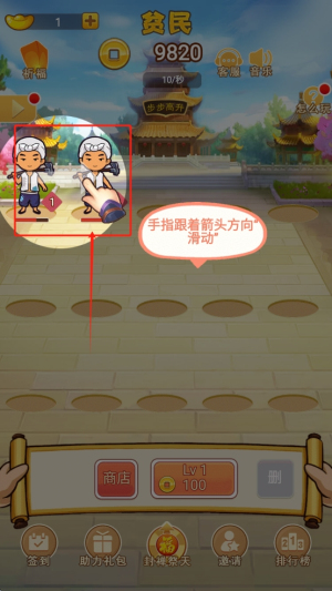 2、手指跟着箭头方向滑动,将贫民放置到指定位置。