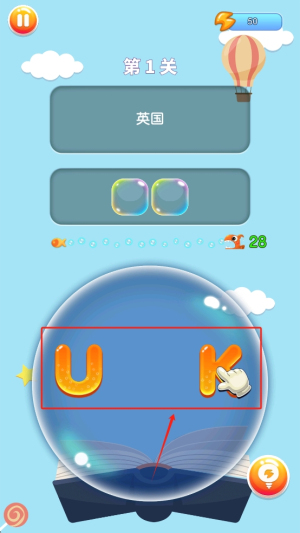 2、在关卡界面,根据提示将字母拖动到正确位置,拼出正确的单词。