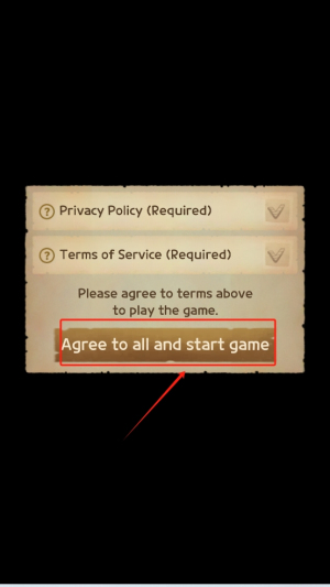 1、点击“Agree to all and start game”按钮,同意游戏条款并开始游戏。