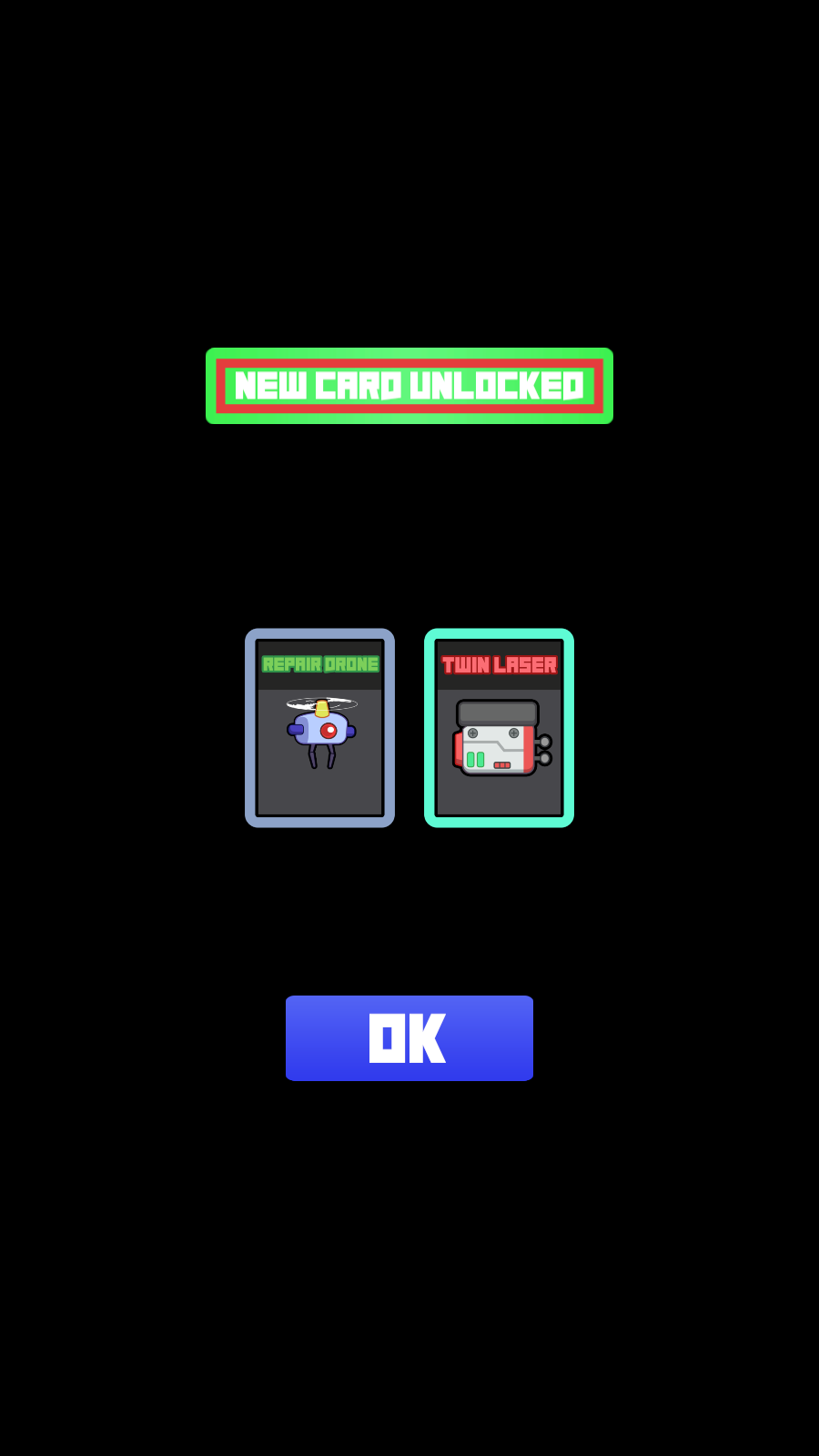 3、解锁新卡牌如【REPAIR-DRONE】和【TWIN-LASER】时,熟悉其功能,适时投入战斗。