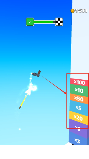 1、进入挑战后,控制角色瞄准目标射击,同时利用后坐力推进自身前进,射击方向决定推进方向,需平衡瞄准精度与移动路线。