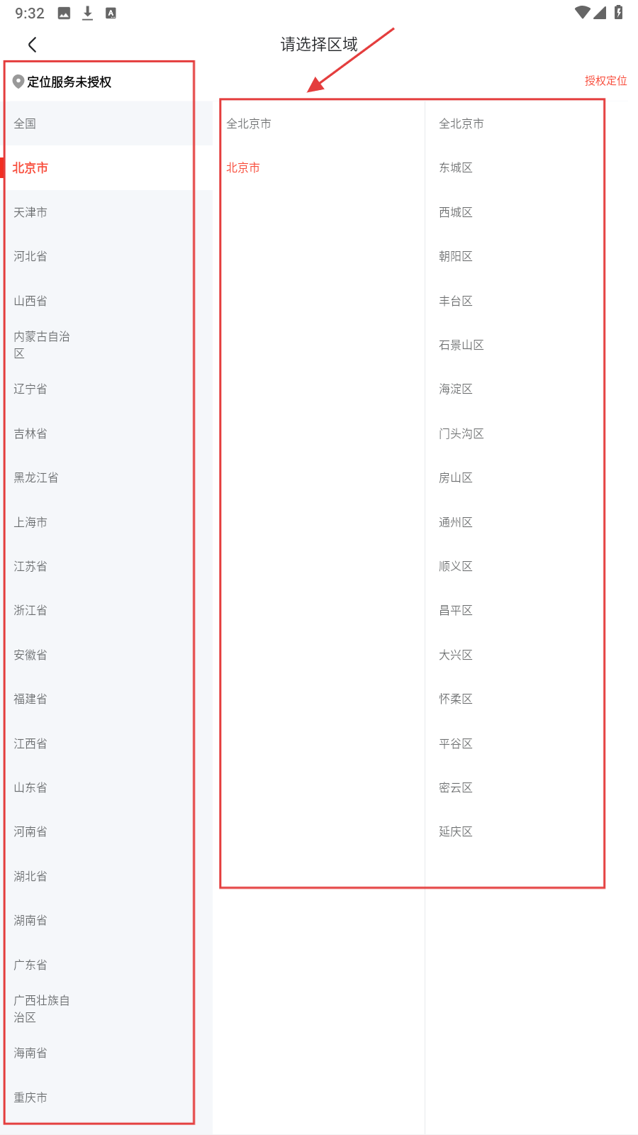 2、在【请选择区域】页面选择想找工作的地区进行区域筛选。