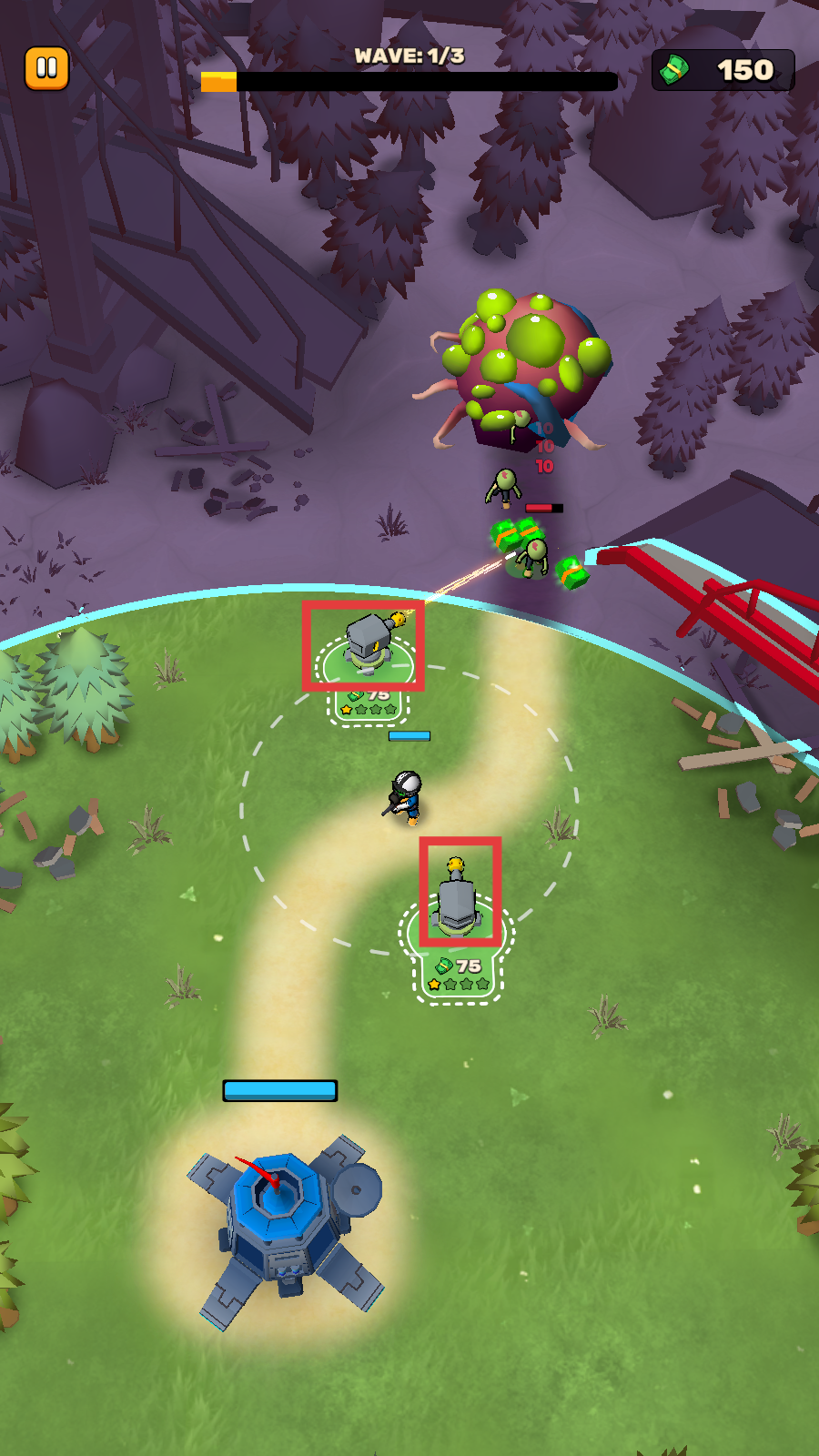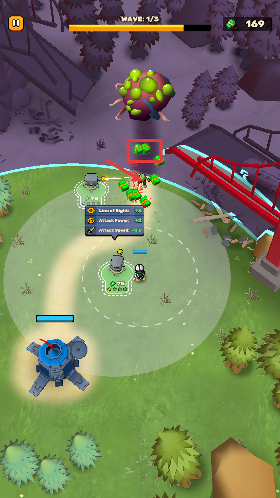 2、在【WAVE:1/3】期间,关注防御塔攻击范围和敌人走向,合理调整布局,利用防御塔攻击敌人。