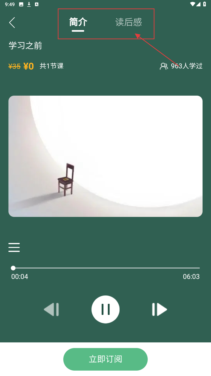 3、进行音频学习后如若对课程喜欢,点击【立即订阅】加入收藏。