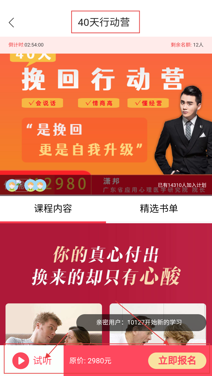 4、还可以点击进入心仪的课程页面,点击下方【试听】进行了解,想继续学习点击【立即报名】即可。