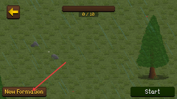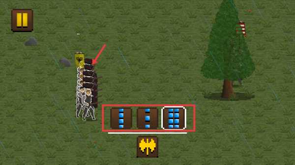 2、在编队选择界面,根据图标样式选择合适编队,如中间叶片状图标编队,可配置不同数量士兵。