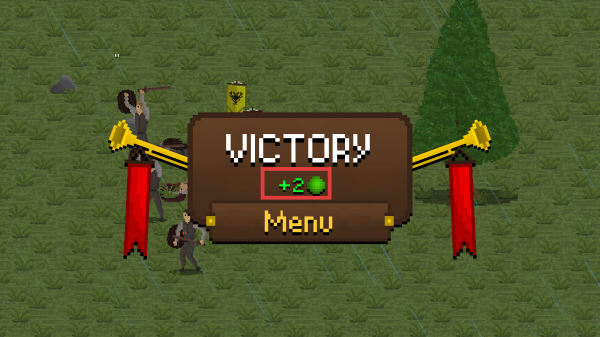 4、战斗胜利后,获取【+2】绿色资源奖励,可点击【Menu】返回主菜单。