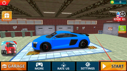 1、点击“START”按钮,进入游戏并选择您的赛车。
