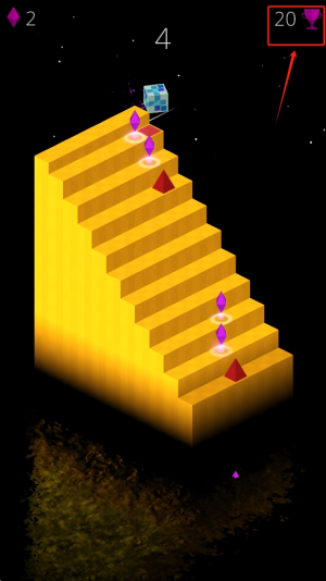 2、在闯关过程中收集更多钻石,钻石分布在楼梯的不同位置,有的需要冒险偏离主路才能获取,收集的钻石可用于解锁新的方块皮肤。