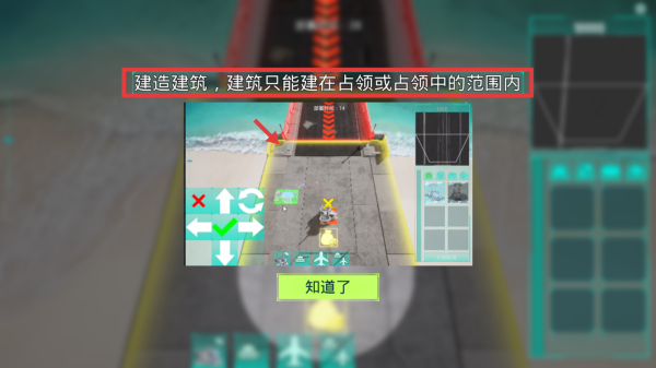 2、进入游戏后,按照提示,建筑只能建在占领或占领中的范围内,合理规划建筑建造位置。
