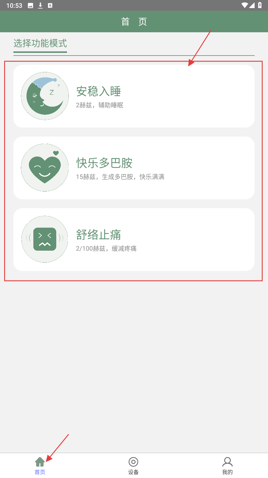 1、打开应用,在应用【首页】点击想使用的功能模式。