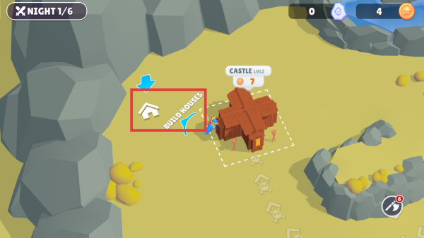 2、城堡建成后,及时选择【BUILD-HOUSES】指令建造房屋,增加人口容纳量,获取更多资源产出。