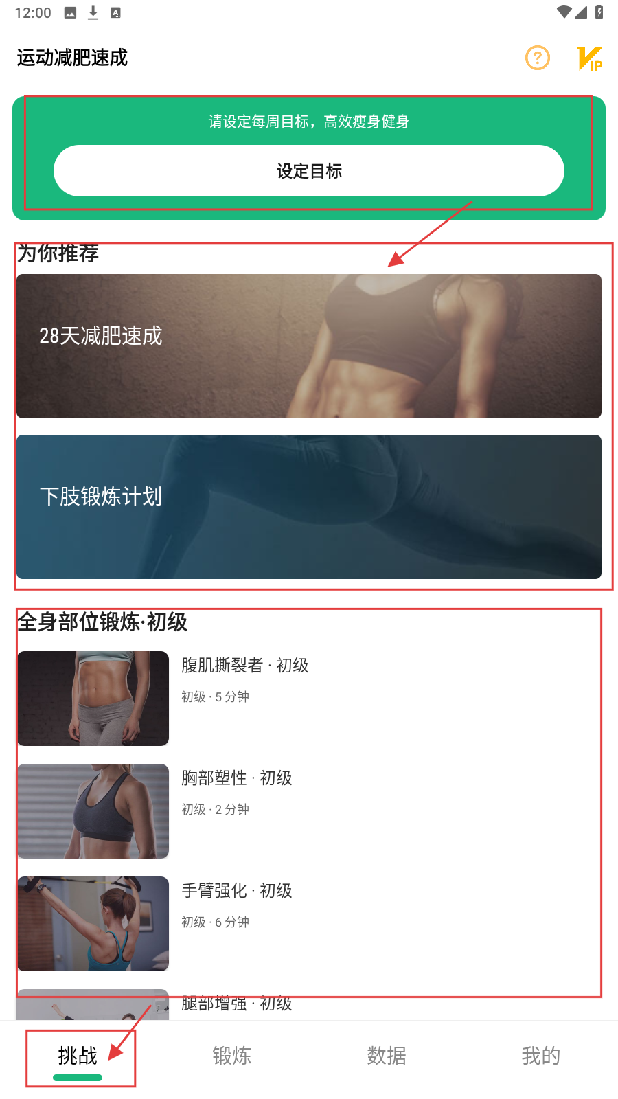 1、打开应用,在【挑战】页面为你推荐栏目中选择想进行的训练并点击。