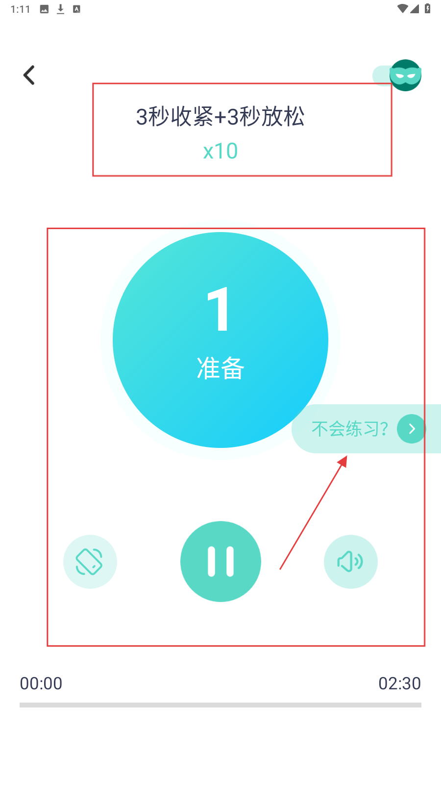 3、进入训练界面,可查看训练动作和次数,按照提示进行训练,遇到问题可点击【不会练习?】按钮获取帮助。