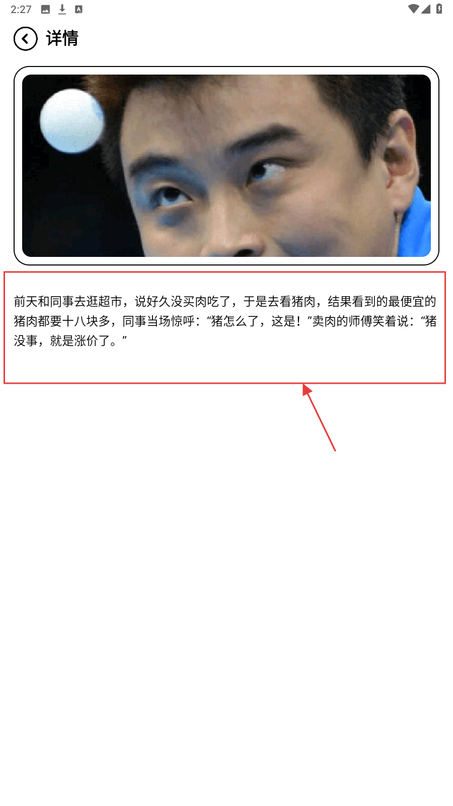 2、在笑话列表点击感兴趣的条目,进入详情页,能完整阅读该笑话内容,收获欢乐。