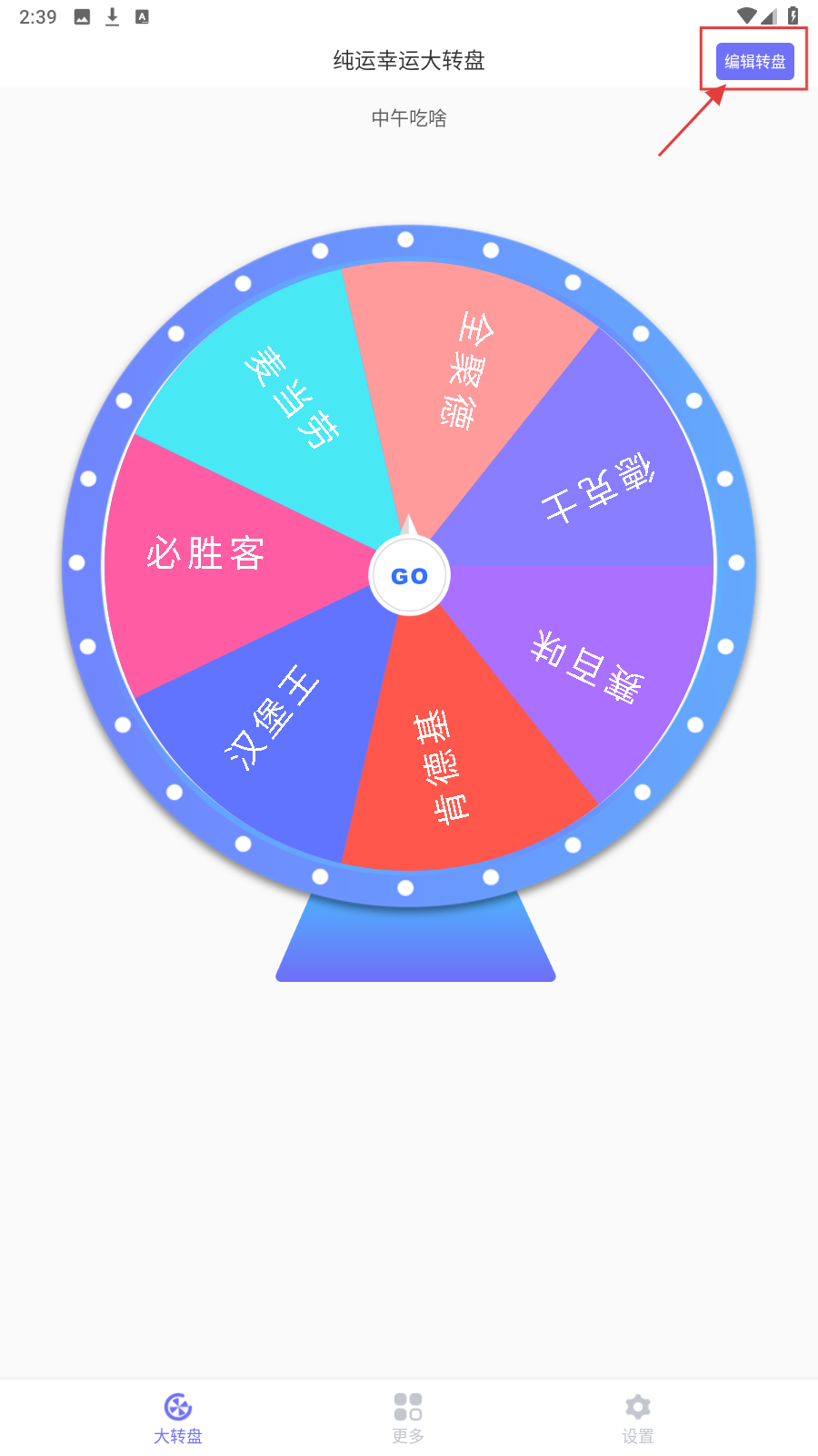 1、点击右上角【编辑转盘】按钮,可进入编辑界面修改转盘选项,定制专属转盘。