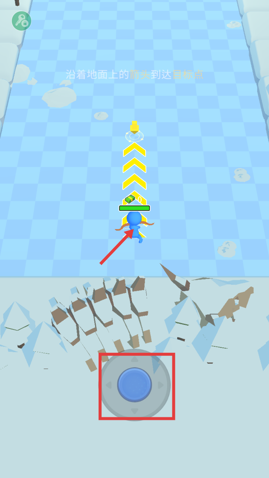 1、操控蓝色角色,沿着地面黄色箭头指示方向移动,抵达目标点。