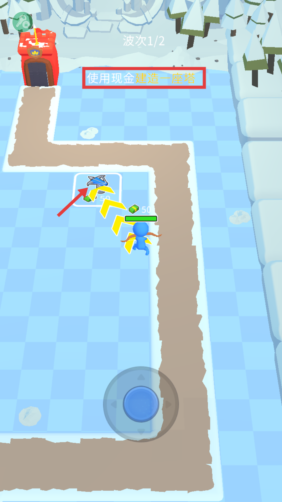 3、积累现金后,按照提示点击对应图标,建造防御塔,助力抵御敌人进攻。