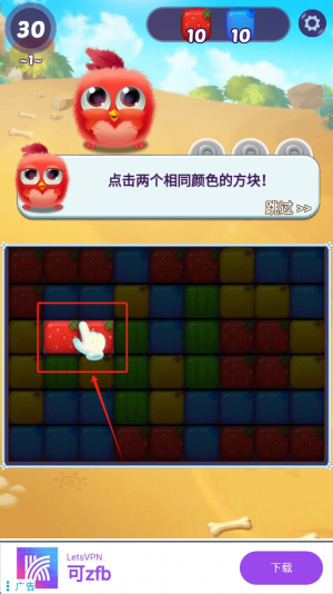 3、然后,根据游戏提示,点击两个相同颜色的方块进行消除。