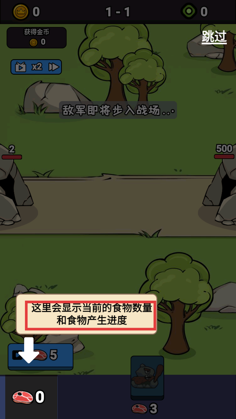 3、战斗前留意“敌军即将步入战场...”提示,提前准备,同时关注界面显示的食物数量和生产进度,合理调配资源。