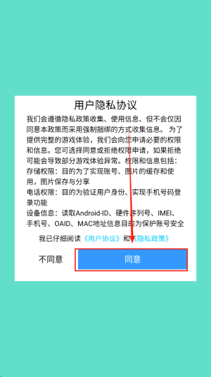 2、阅读“用户隐私协议”后,点击“同意”继续下一步。