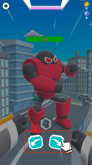 1、进入机甲竞技场,操控机器人与对手展开一对一战斗,通过按键控制移动、攻击与防御,抓住对手破绽发动猛攻,消耗其生命值。