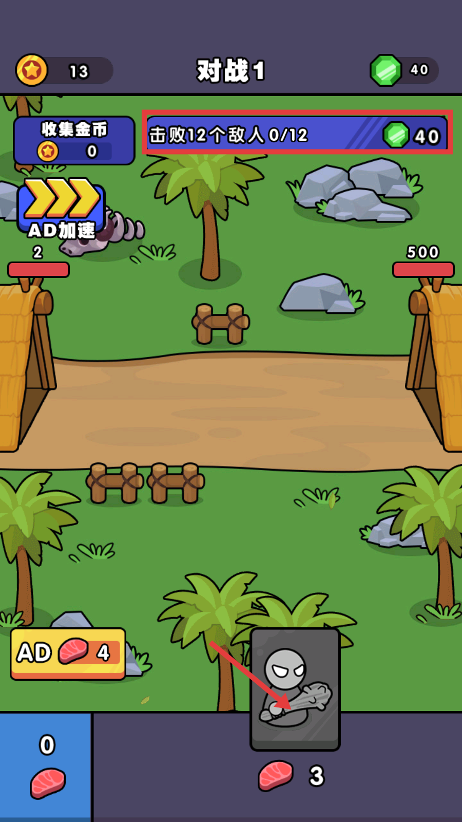 3、在【对战1】中,明确【击败12个敌人-0/12】任务目标,合理安排角色,可借助【AD加速】提升战斗效率,获取奖励。