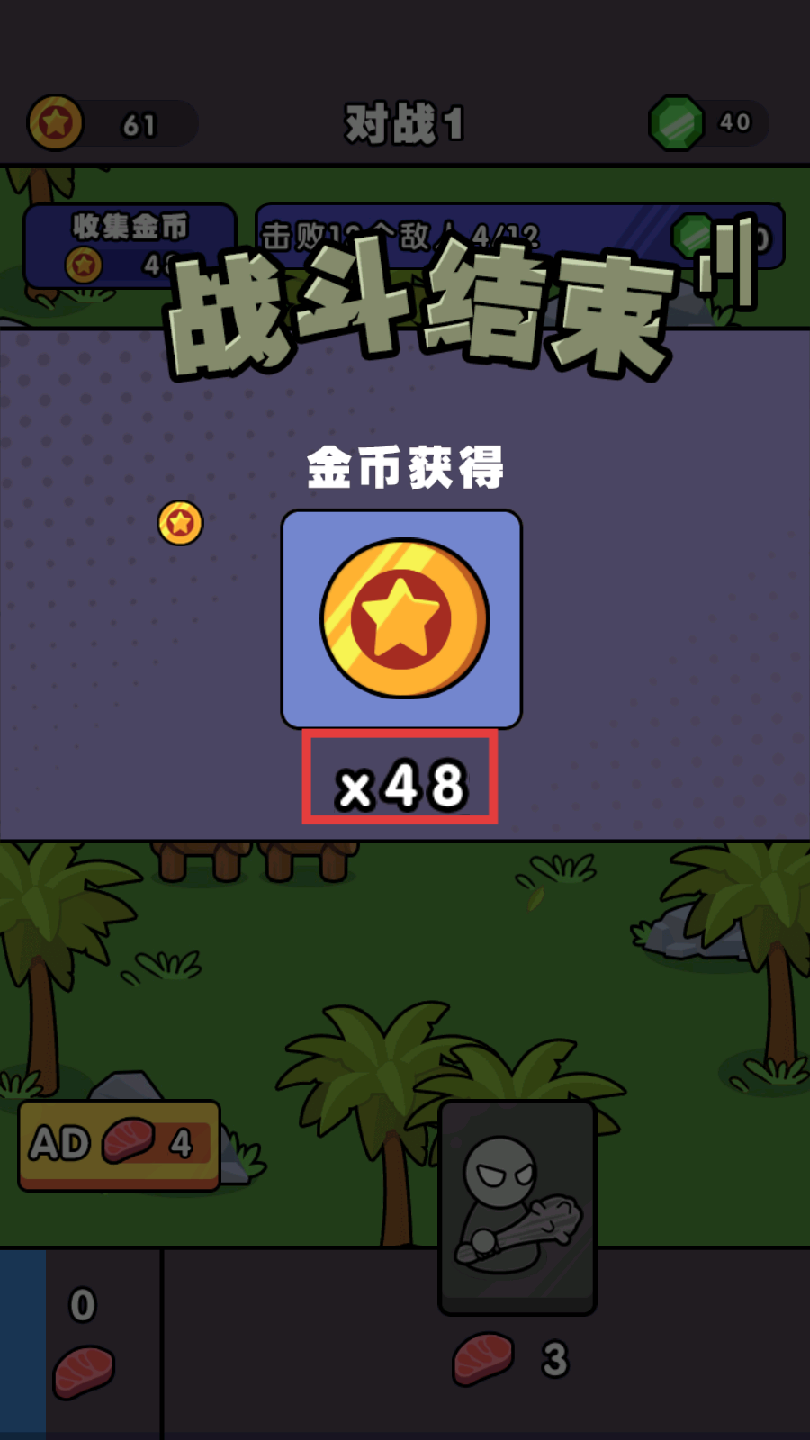 4、战斗结束后,及时领取【金币获得-x48】奖励,积累金币用于后续角色招募和单位升级,提升游戏实力。