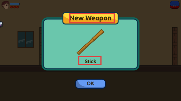 4、获得【New-Weapon】-【Stick】,点击【OK】确认,可用于后续战斗或交互。